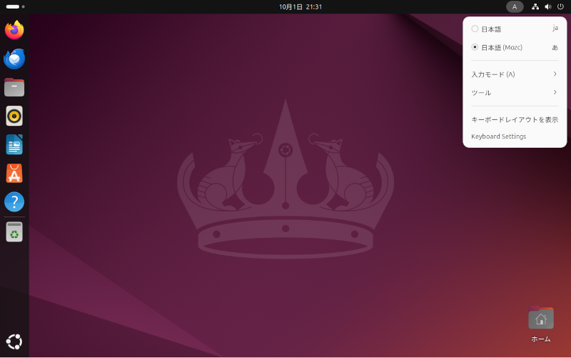 これがUbuntuの画面です。初めて見る人も多いでしょう。