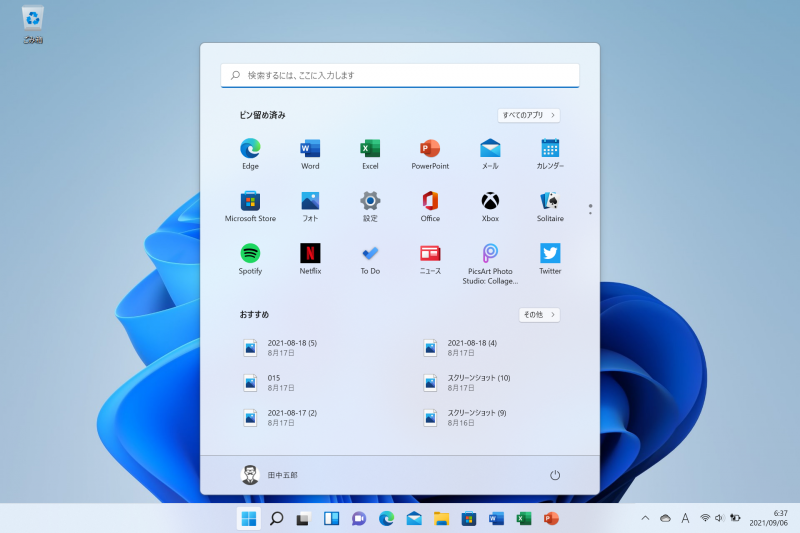 次に、移行されている方にとっては既視感満載のWin11のUIです。